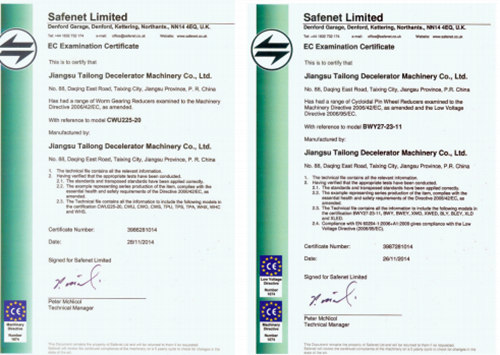 泰隆減速機質(zhì)量認可證書